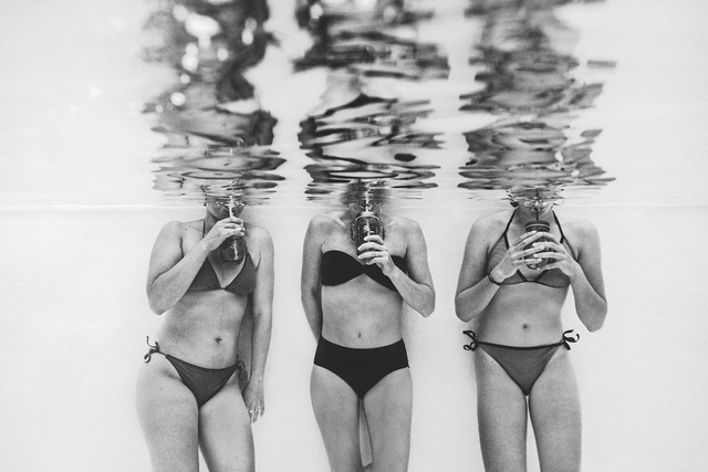 Photographies aquatiques en noir et blanc, réalisées en immersion, sans montage, dans un style plutôt retro et parfois décalé.